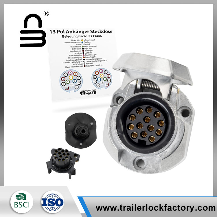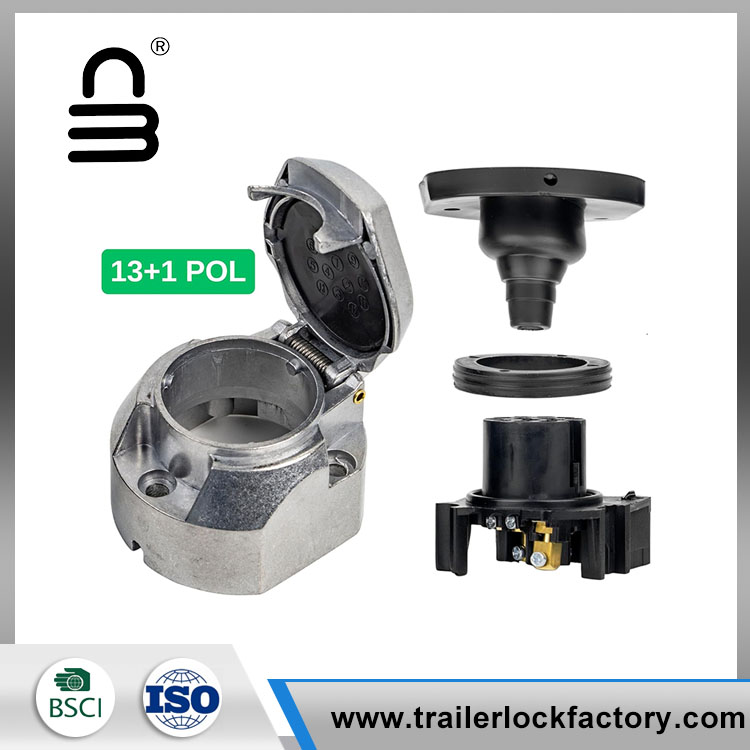 Palam pin 13+1 dengan Auto Shut Off ISO mematuhi soket treler pin Yougheng 13 dengan perumahan aluminium mempunyai penutupan auto terbina dalam yang melekat lampu kabus ke kenderaan menunda.