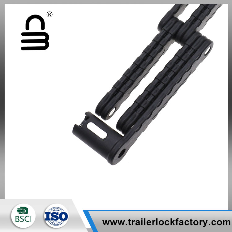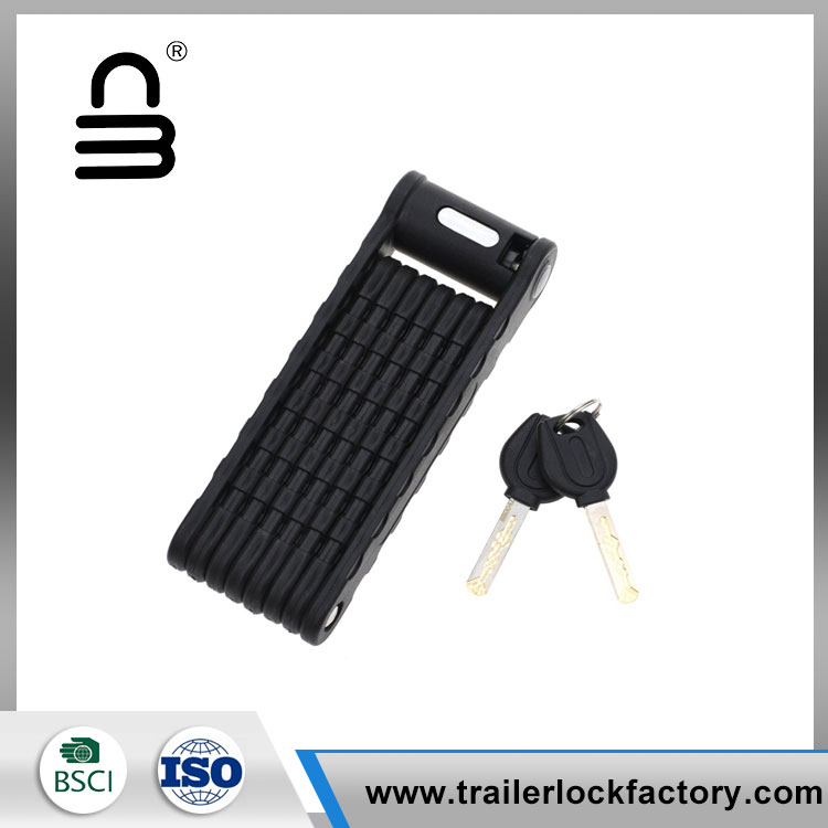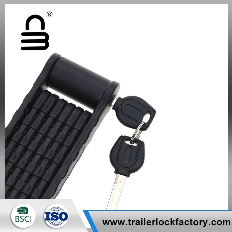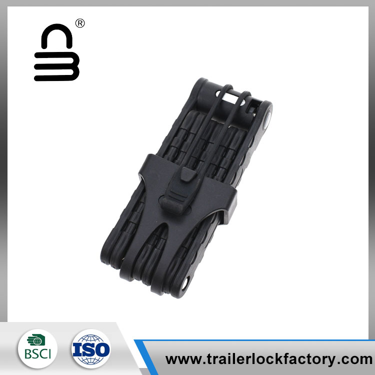 Basikal lipat kunci abs shell mengelakkan geseran dengan cat kereta, badan kunci aloi zink memberikan prestasi anti-kecurian peringkat tinggi Burger Lock, 8 keluli keras bersama disuntik ke dalam sendi 8 rantai sendi, dan silinder kunci mengamalkan reka bentuk silinder gerudi tiruan
