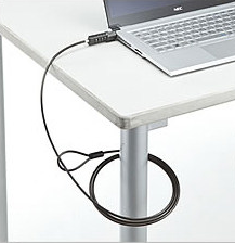 1 Balut kabel di sekeliling kaki meja dan lulus melalui kunci gabungan.